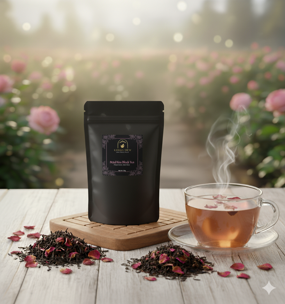 At Kangra Brew, we bring you teas that are estate-to-cup, authentic, and fresh. Every leaf is carefully hand-picked to ensure that you experience the purity, tradition, and wellness of Kangra Valley teas in each sip. Our Rich Petal Kiss – Rose Black Tea is a blend of heritage, health, and indulgence, designed for tea lovers who value both flavor and wellness.